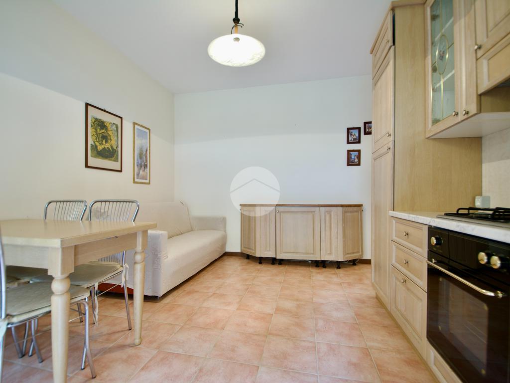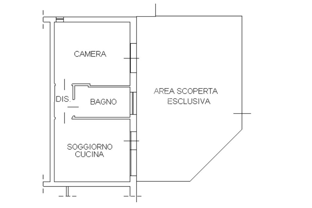 L'appartamento si compone di un luminoso soggiorno con angolo cottura, un disimpegno, una spaziosa camera matrimoniale e un bagno finestrato. La proprietà comprende inoltre un comodo box auto, accessibile tramite ascensore condominiale.