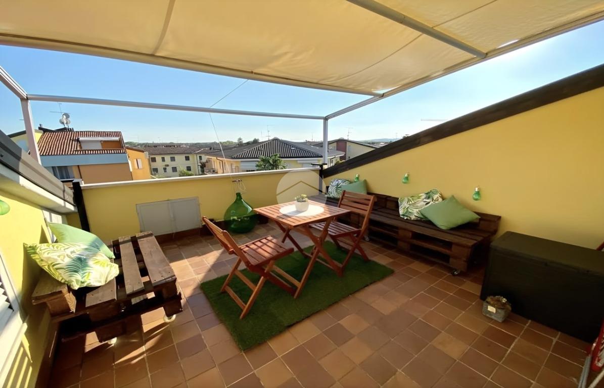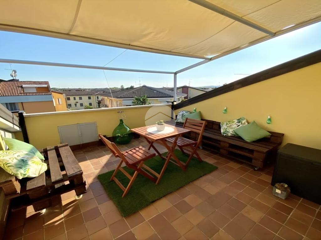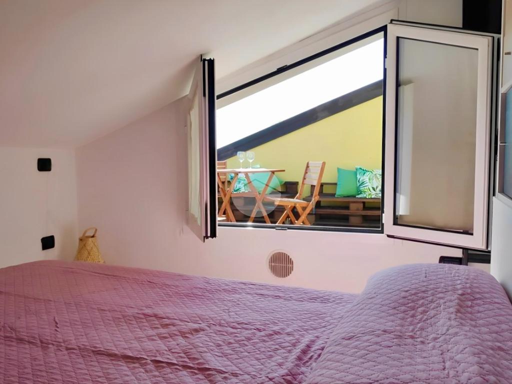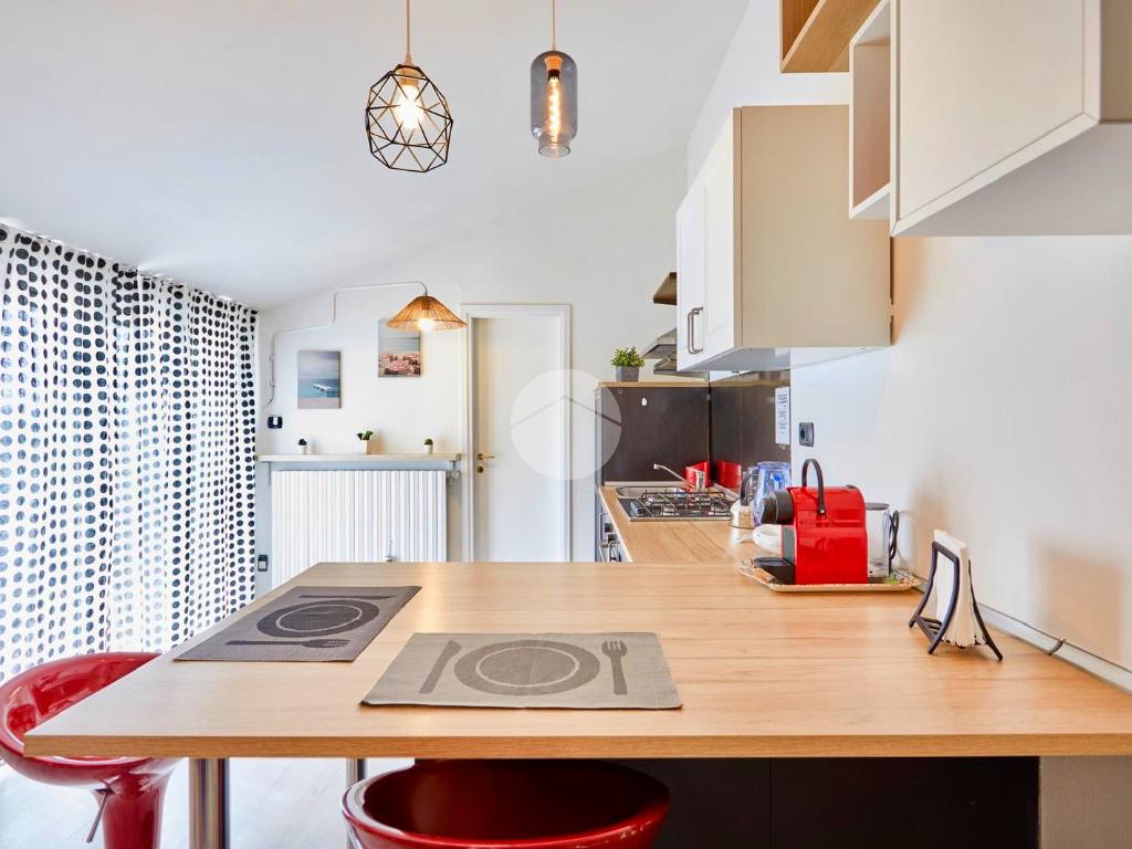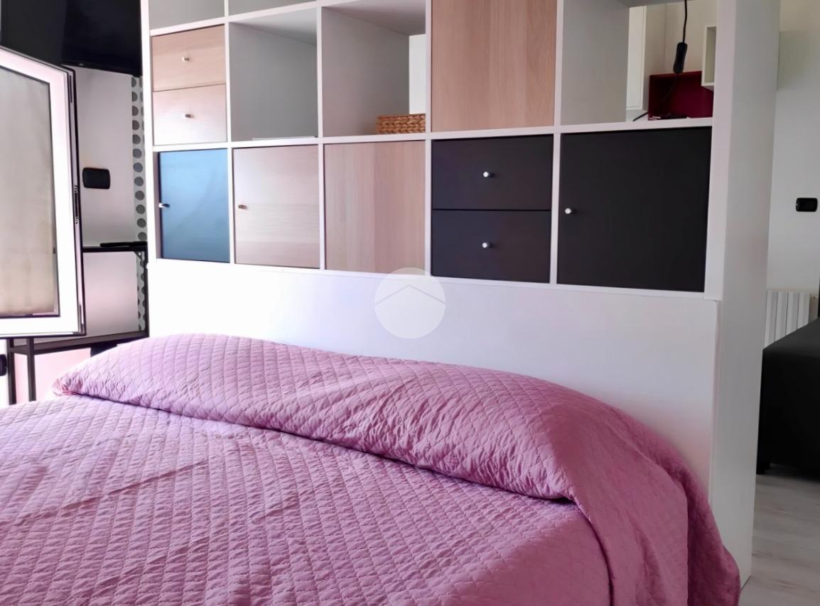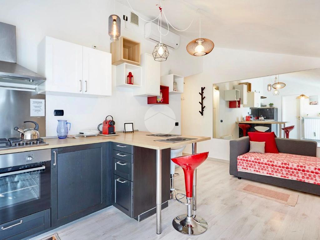 L'immobile, posto al terzo e ultimo piano, si compone da ingresso, soggiorno con cucina a vista, una funzionale divisione che isola la zona notte dotata di letto matrimoniale e, infine, un bagno finestrato con portafinestra conduce a un'ampia terrazza pavimentata, con la possibilità di chiuderla per creare una veranda bioclimatica.