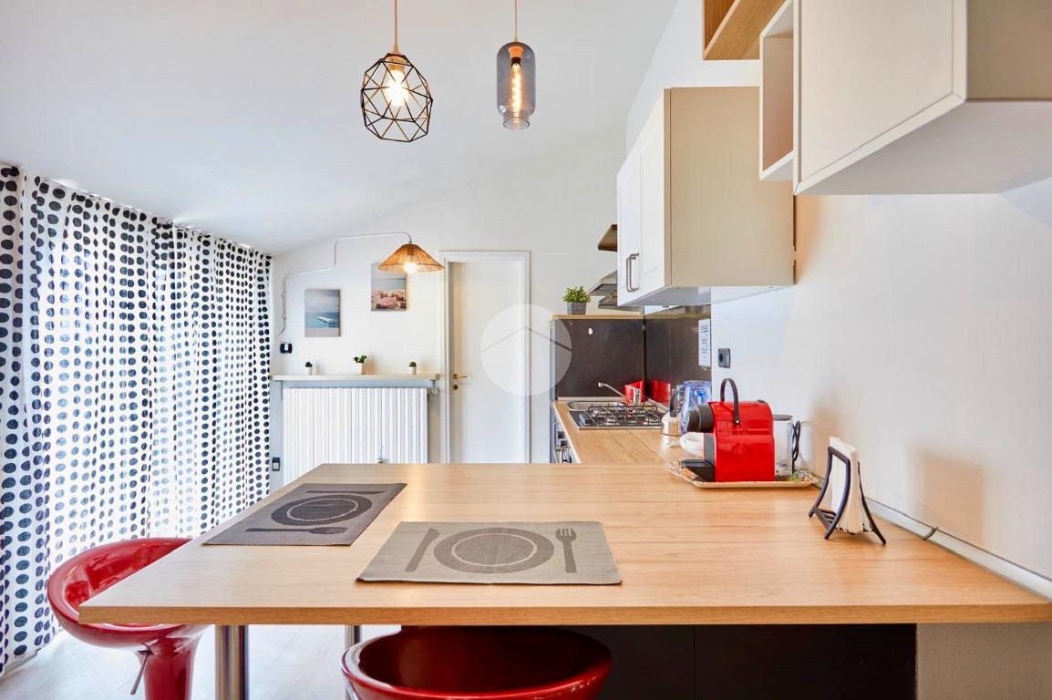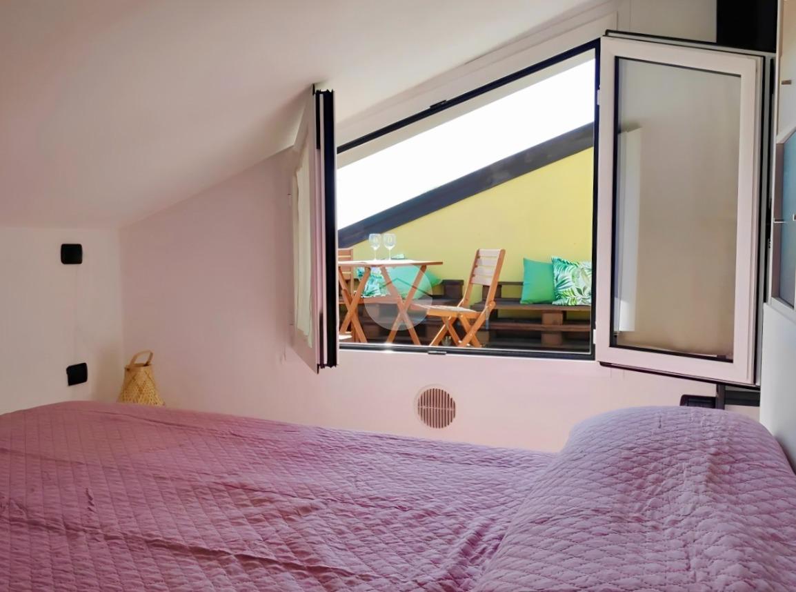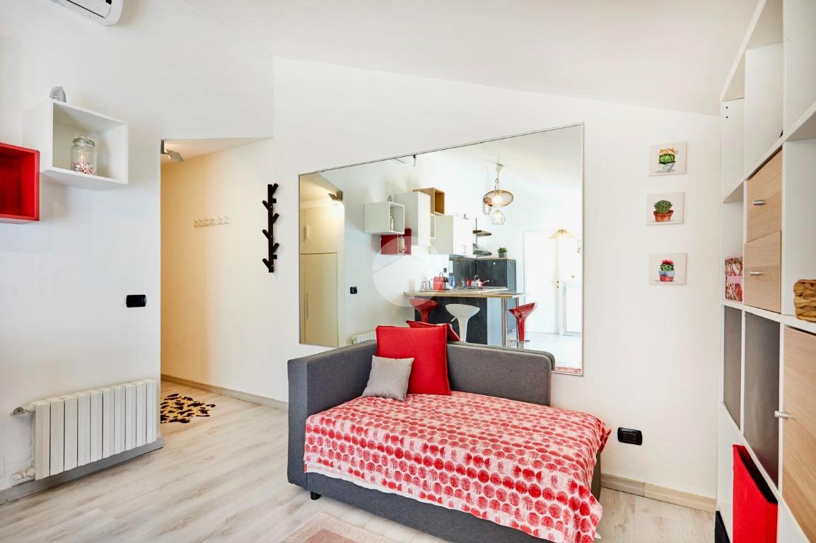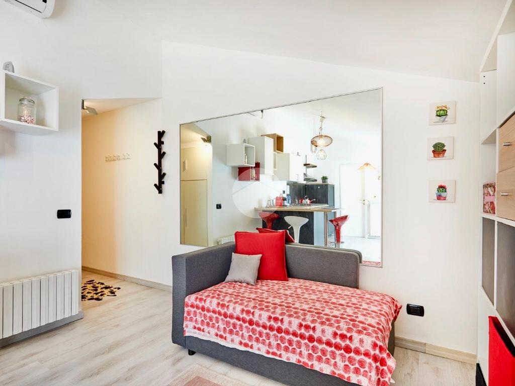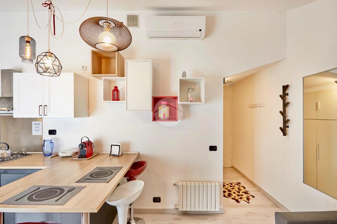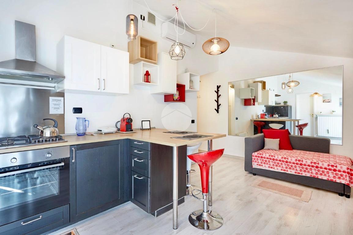 L'immobile, posto al terzo e ultimo piano, si compone da ingresso, soggiorno con cucina a vista, una funzionale divisione che isola la zona notte dotata di letto matrimoniale e, infine, un bagno finestrato con portafinestra conduce a un'ampia terrazza pavimentata, con la possibilità di chiuderla per creare una veranda bioclimatica.
