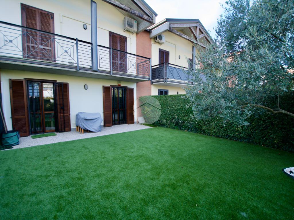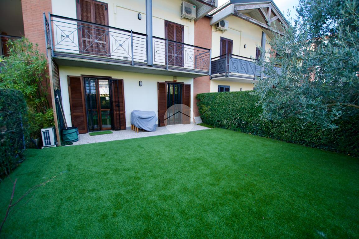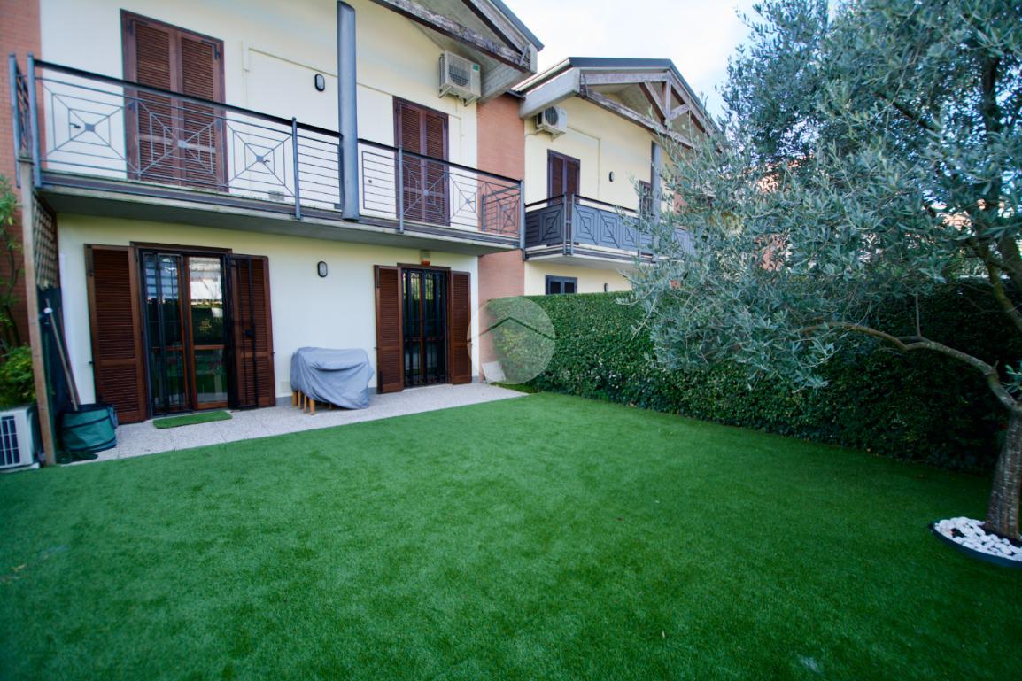 L’immobile è dotato di impianto di aria condizionata e il giardino, rivestito in erba sintetica, assicura un'area esterna curata e facile da mantenere.